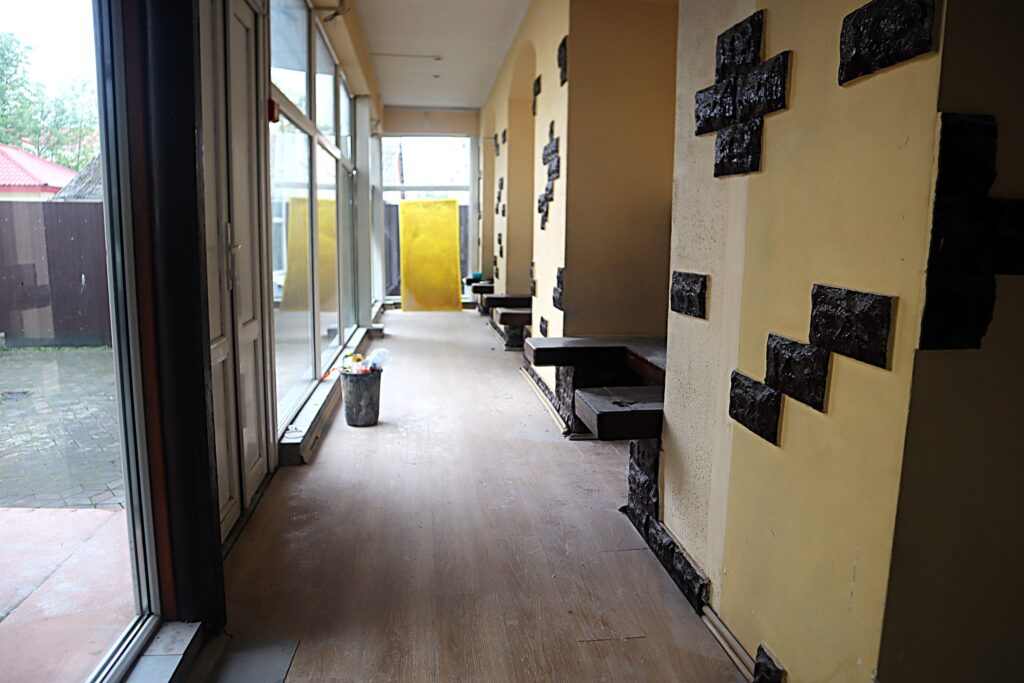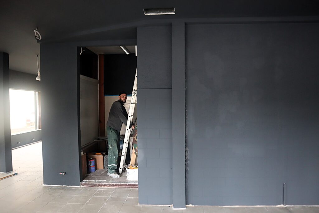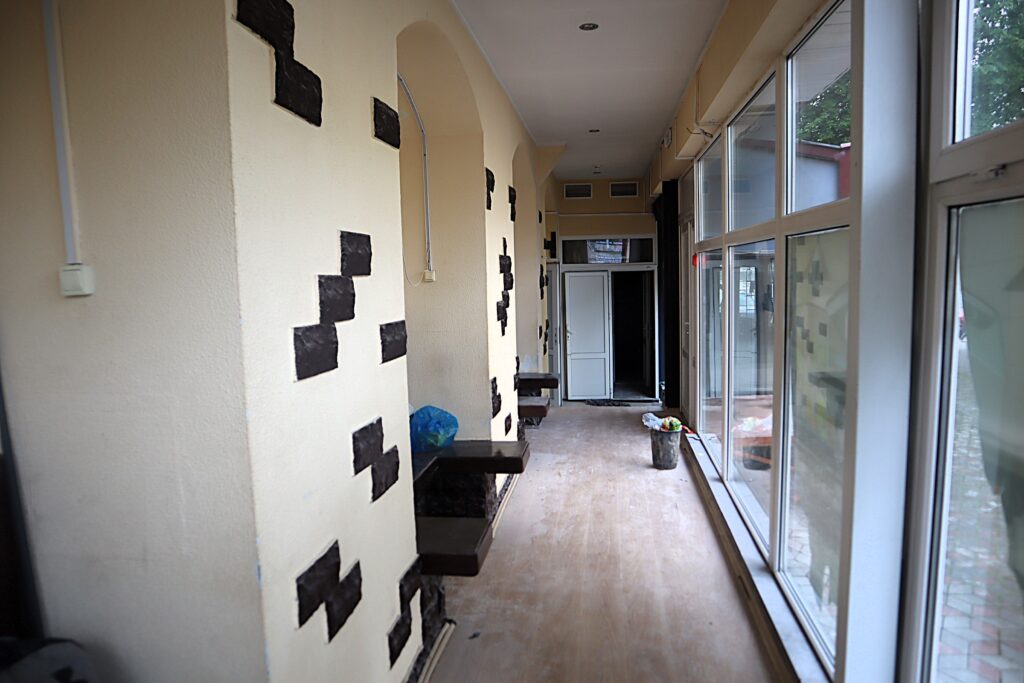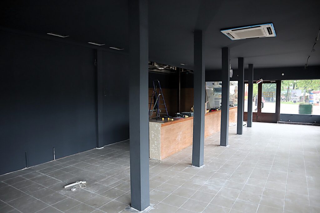 В среду, 28 мая, работали три мужчины, которые рассказали Kraj.by, что ремонтирует помещение кафе их фирма, общество с ограниченной ответственностью. Работают третью неделю. За это время покрасили стены в основном помещении кафе.
