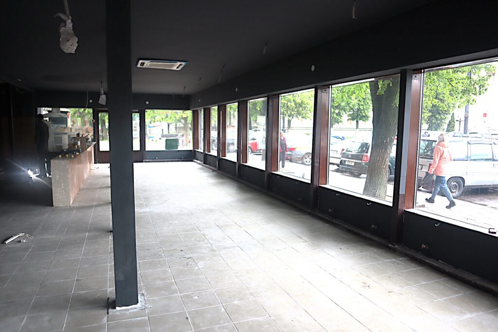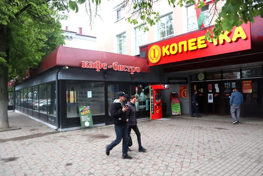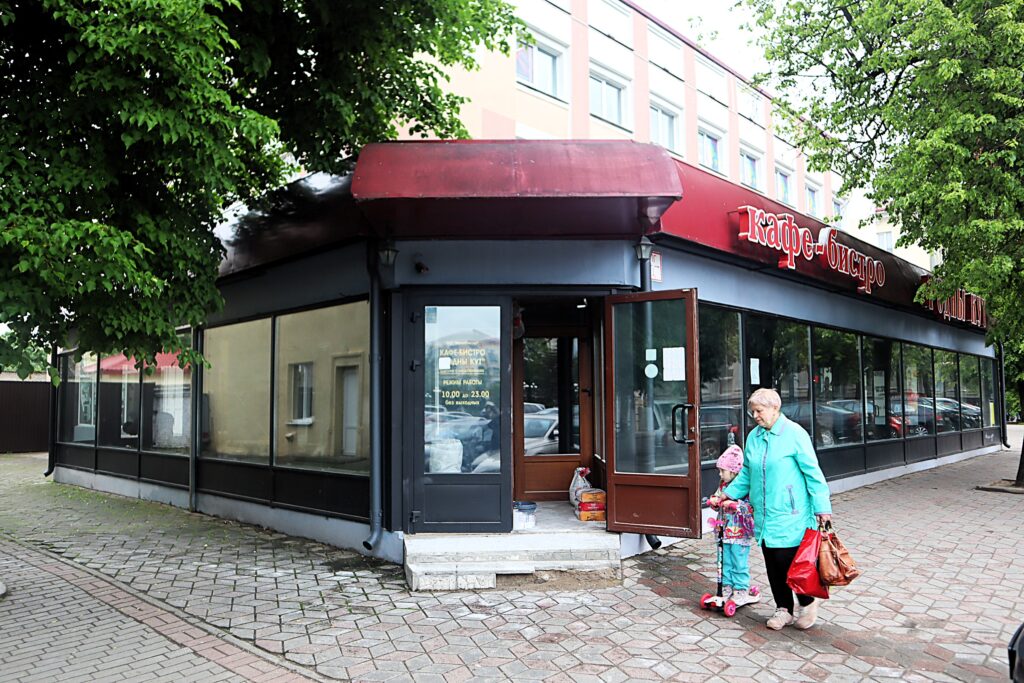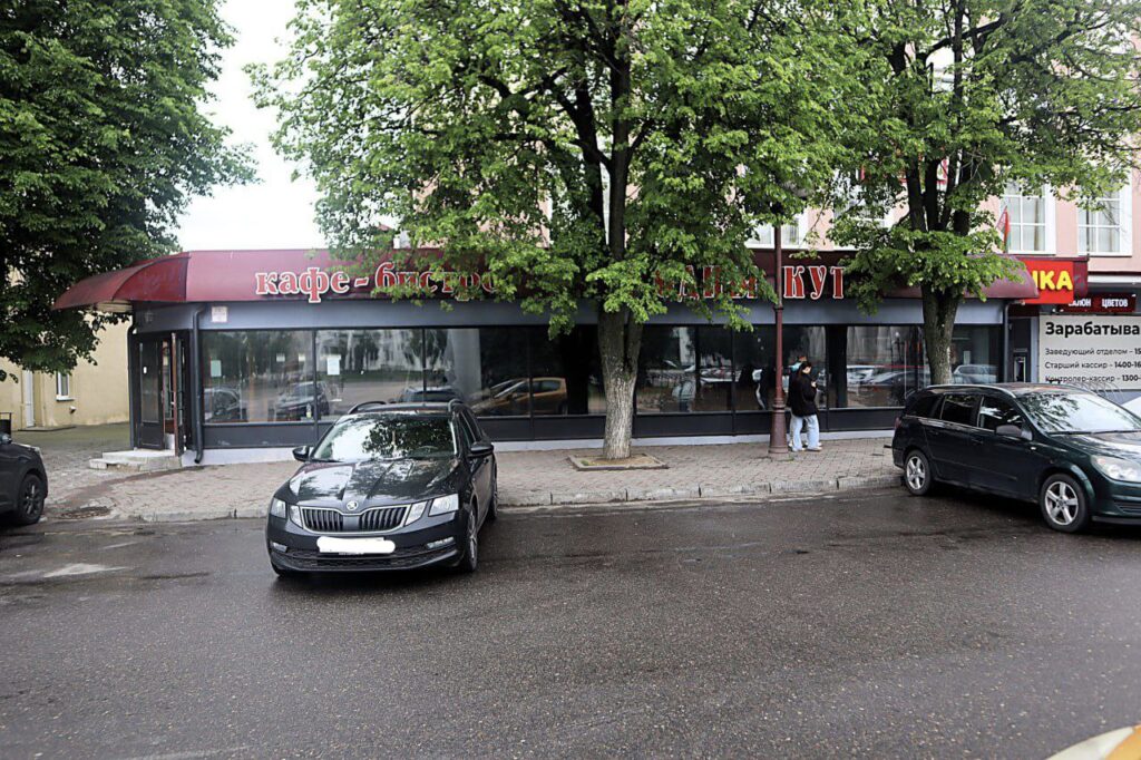 Кафе рядом с бывшим универмагом до сих пор называется «Родны кут». Впрочем, сейчас здесь не покушаешь. Внутри идет ремонт.
