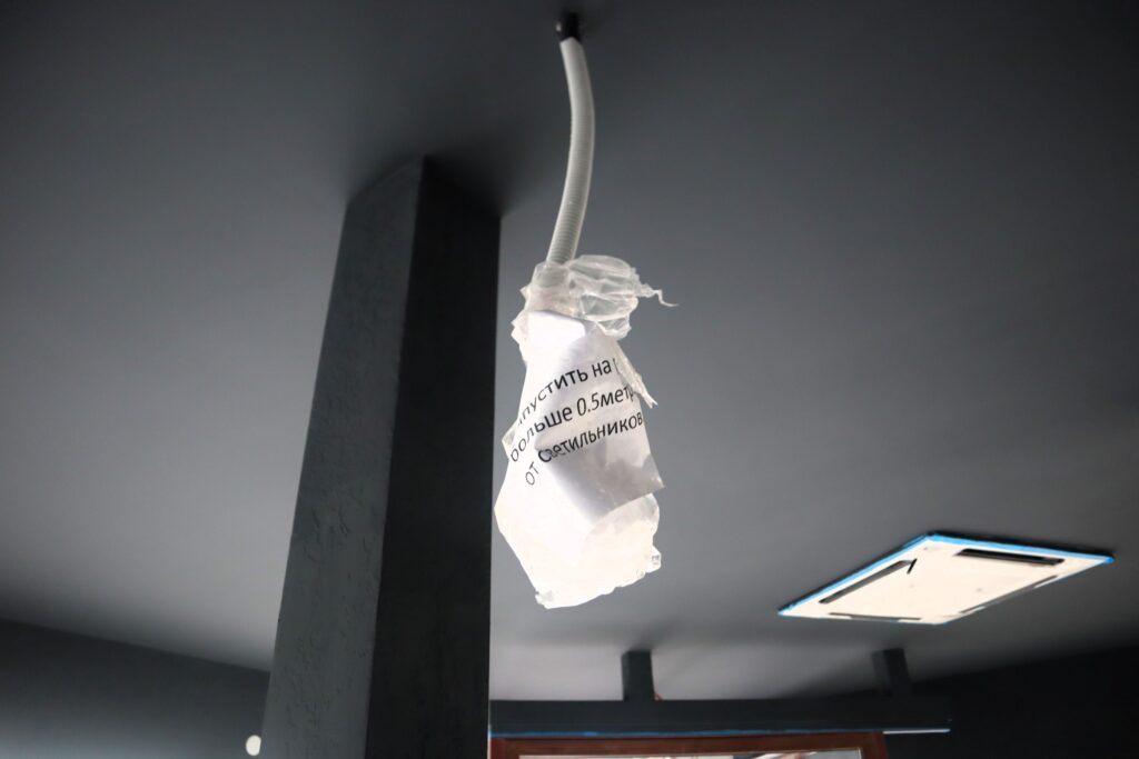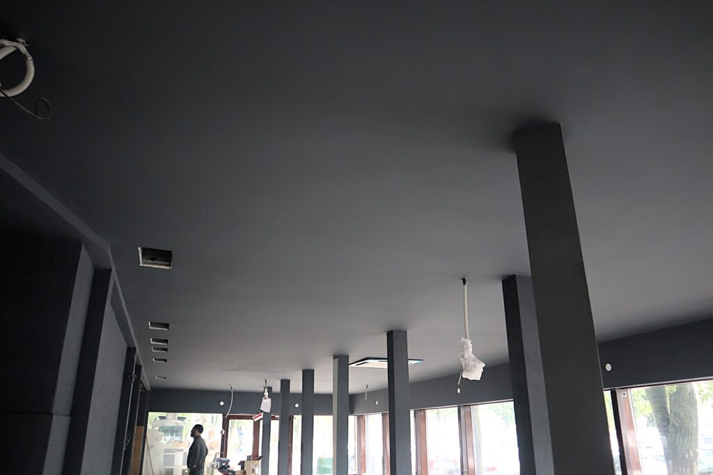Здесь же подготовили и покрасили потолок.