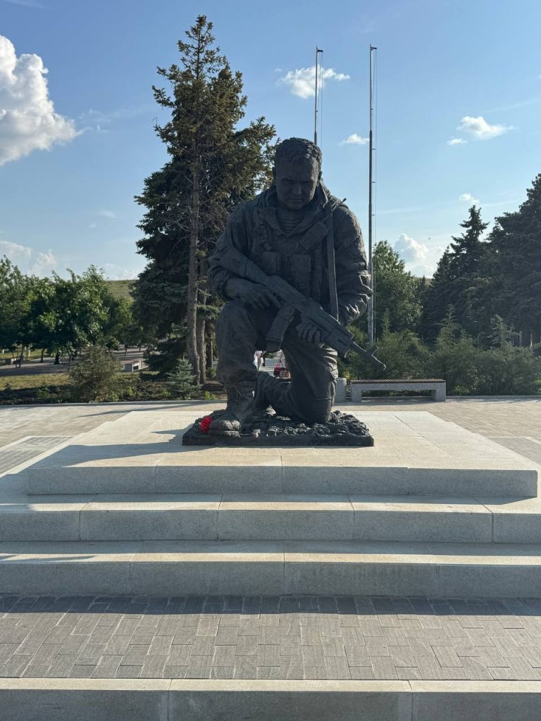 — Почти весь июнь там провели. Планировали посетить интересные памятные места и взяли с собой флаги Беларуси и военно-патриотического клуба «Филин», в котором занимаются наши дочери. Между Донецком и Луганском есть городок Снежное, там установлен мемориальный комплекс «Саур-Могила» в память о подвиге советских солдат, погибших при прорыве немецкой оборонительной линии на реке Миус. Защитники Донбасса в 2014 году повторили подвиг своих прадедов и этот мемориал был восстановлен и дополнен новыми именами освободителей Донбасса, — уточняет Алексей.