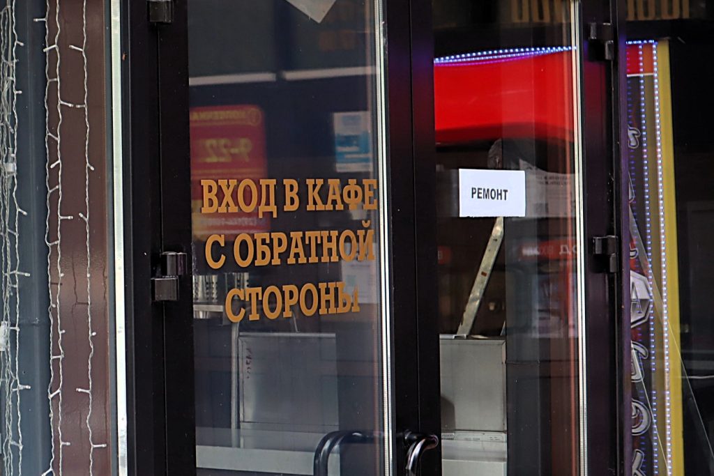 Но, к сожалению, покушать в нем в понедельник, 28 июля, мы так и не смогли. На дверях с обеих сторон – вывеска о том, что ремонт в здании продолжается.