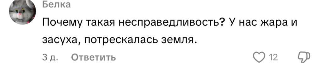 Пользователи из разных уголков мира делятся, что в их районах ситуация прямо противоположная — настигла небывалая засуха.