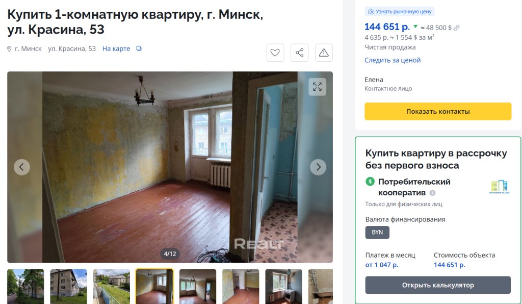 Более надежным выглядит предложение за 144 651 рубль – однокомнатная квартира по улице Красина. Квартира находится на втором этаже, представляет из себя классический образец «советской» квартирной культуры. Да, ей потребуется современный ремонт, но это тот случай, когда за скромную цену можно получить полноценное жилье без очевидных юридических осложнений.