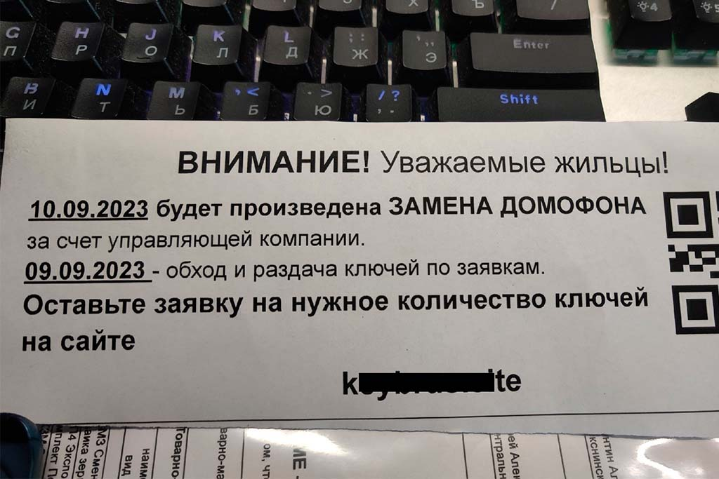 Жильцы находят извещения о плановой замене домофонов, выполненные в корпоративном стиле и снабженные QR-кодами «для уточнения деталей и сроков работ». Любопытство и желание быть в курсе событий своего дома заставляет человека достать телефон и отсканировать код. Результат предсказуем: либо устройство моментально блокируется, а мошенники требуют выкуп, либо на него устанавливается троянская программа. Последняя открывает злоумышленникам доступ ко всем приложениям, включая банковские, и к переписке.