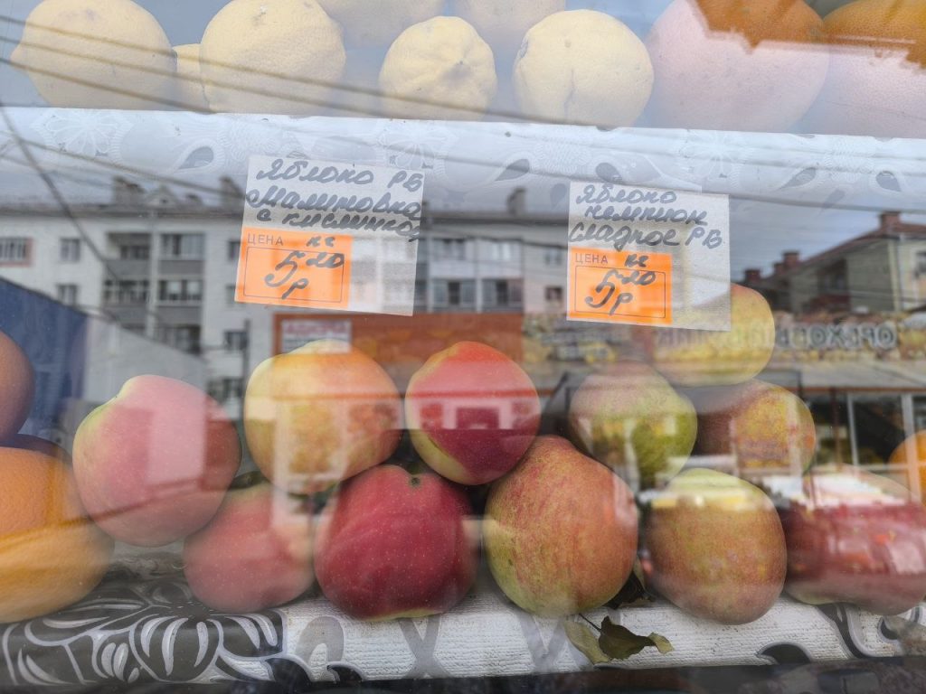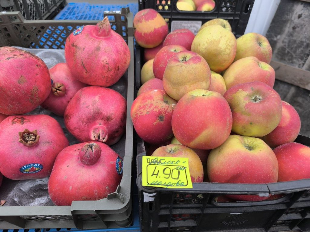 Яблоко, прибывшее на рынок из Молдовы, по 5,90 рубля за килограмм. В торговом павильоне напротив такое же — по 4 рубля 90 копеек.