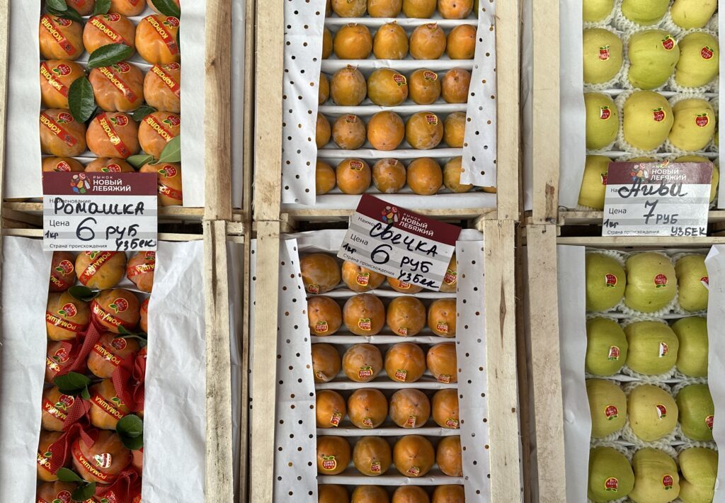 Хурма тоже радует ассортиментом: сорта «Свечка» и «Ромашка» стоят от 6 до 8,5 рубля за килограмм, а вот импортная «Каки» пока дороже — около 20 — за кило.