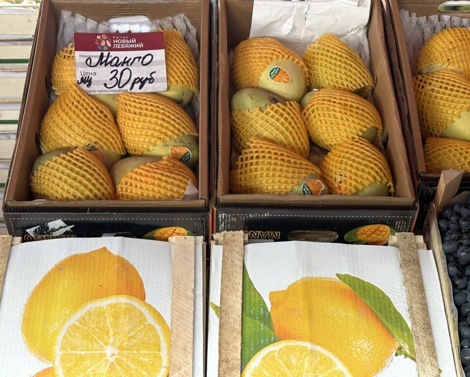 Манго на «Новом Лебяжьем» можно купить практически всегда — самая низкая цена, что удалось найти, — 30 рублей за килограмм.
