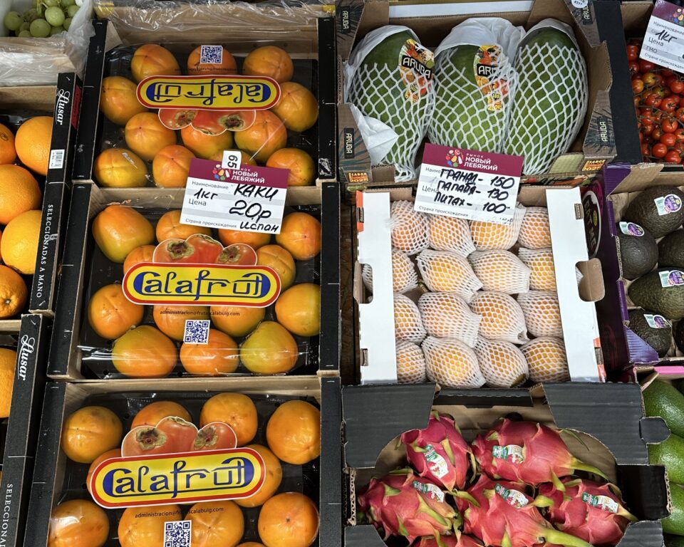 Для любителей экзотики в Таборах есть гранадилла (цена кусается — около 150 рублей за килограмм), папайя — 130 и питахайя — 100.