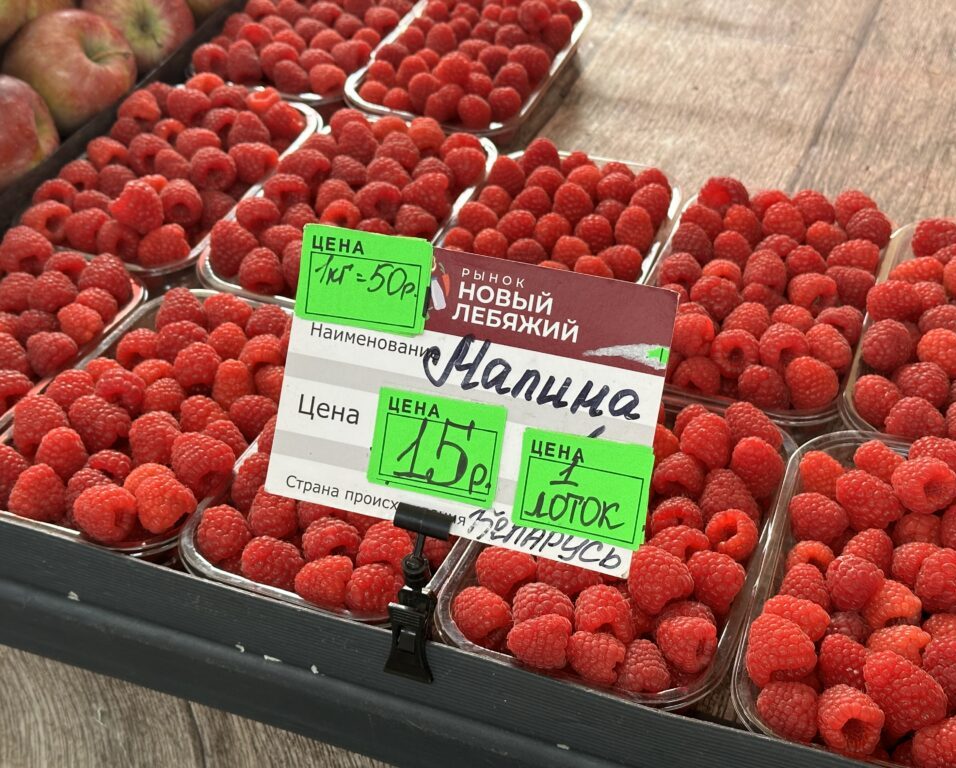 Свежесобранная клюква продается от 14 до 14,90 рубля за килограмм, а малина — от 25 до 50. Если не хочется покупать целый килограмм, можно взять небольшой лоток за 10–15 рублей.