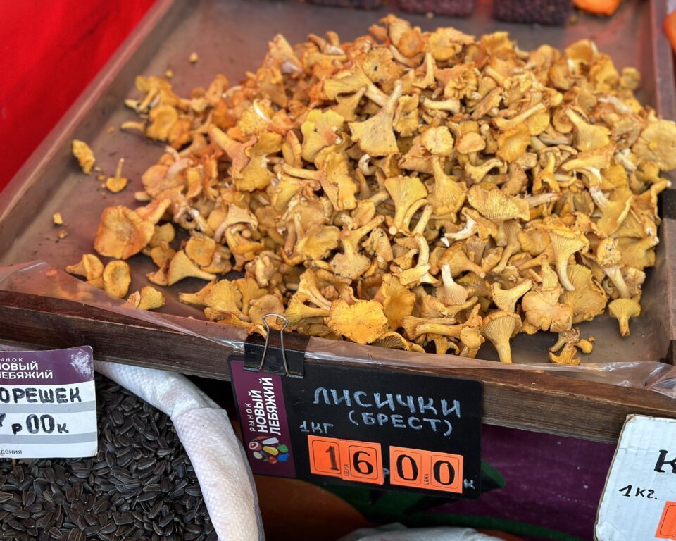 На прилавках также есть свежие лисички — всего за 16 рублей за килограмм.