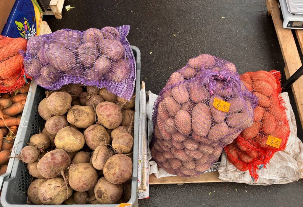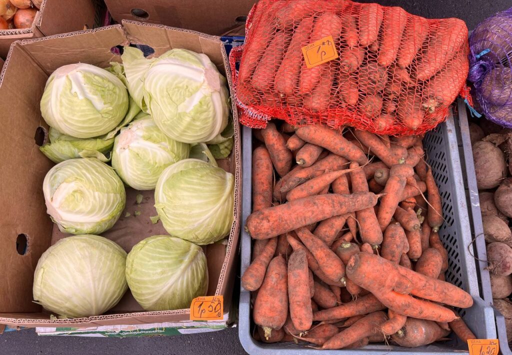 На рынке свежие овощи стоили так: картофель — 1,30–1,50 руб., свекла — 1,30 руб., морковь — 1–1,30 руб., капуста — 1,50 руб., цветная капуста — 6 руб., пекинская — 3,50 руб. Лук обычный — 2 руб., для салата — 3 руб., чеснок — 4 руб. Помидоры — от 3 руб. до 8 руб., огурцы — 5 руб., перец — 3,50–7,50 руб.