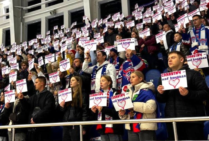 С российских трибун звучит в адрес белорусской команды: «Домооой порааа!»