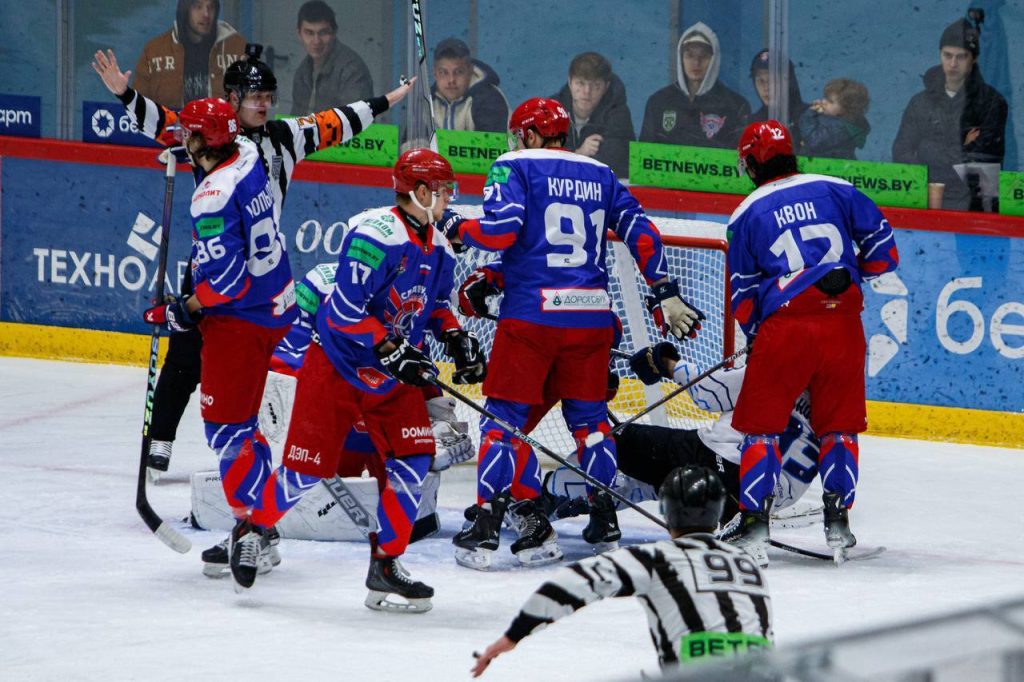 Почти все две минуты молодечненцы провели запертыми в своей зоне, но выстояли, в том числе благодаря самоотверженной игре Степанова.