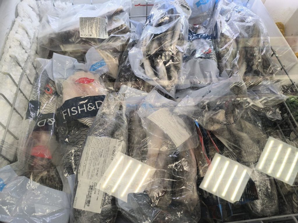 В продуктовом на улице Богдана Хмельницкого — цена на скумбрию, например, другая и равна 10 рублям 79 копейкам. Может, потому что привезена из Китая? Чтобы выбрать нужную, придется поискать: в морозильной камере также в упаковках горбуша по 20 рублей 99 копеек, хек по 13 рублей 65 копеек, салака по 8 рублей 99 копеек, путассу по 3 рубля 29 копеек за килограмм.