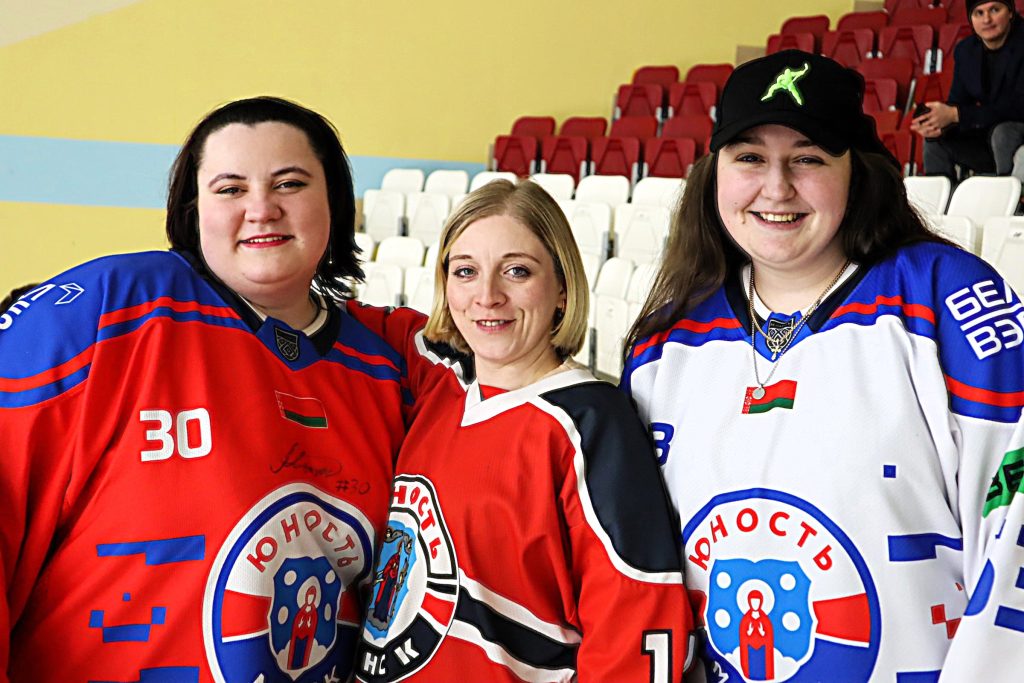 Если молодечненские болельщики на трибунах взгрустнули от того, что их любимцы никак не могут отыграться, то колоритные столичные девчонки не скрывали своей радости от этого факта. Течение поединка вполне себе устраивало Лизу и Снежану, а также Ольгу Владимировну, которая уютно устроилась между ними.