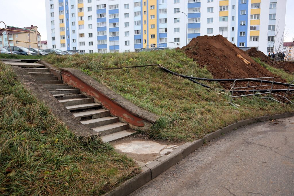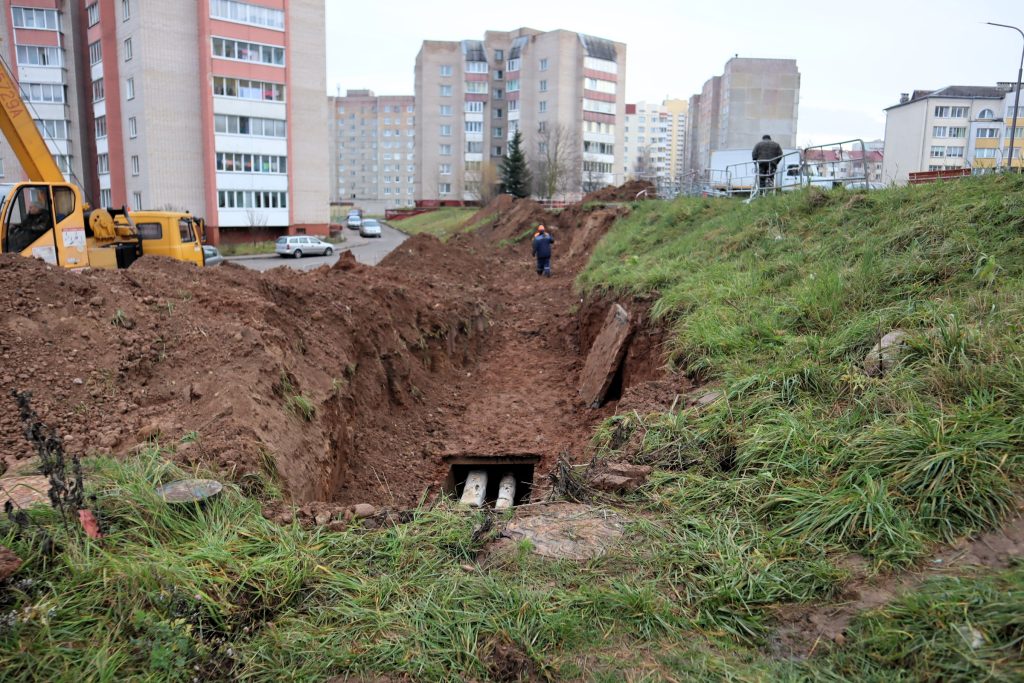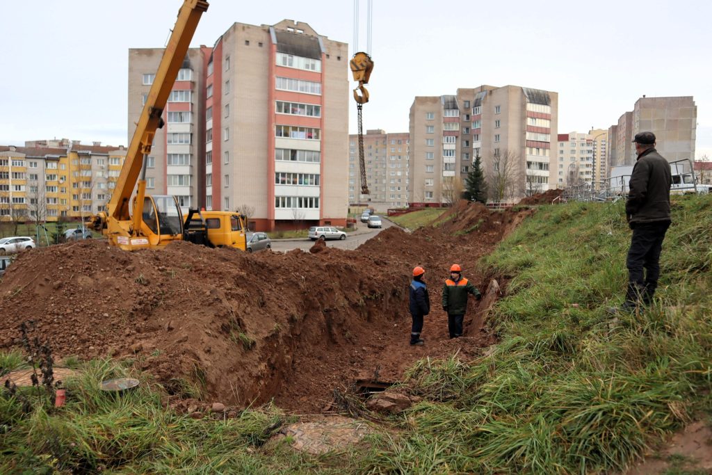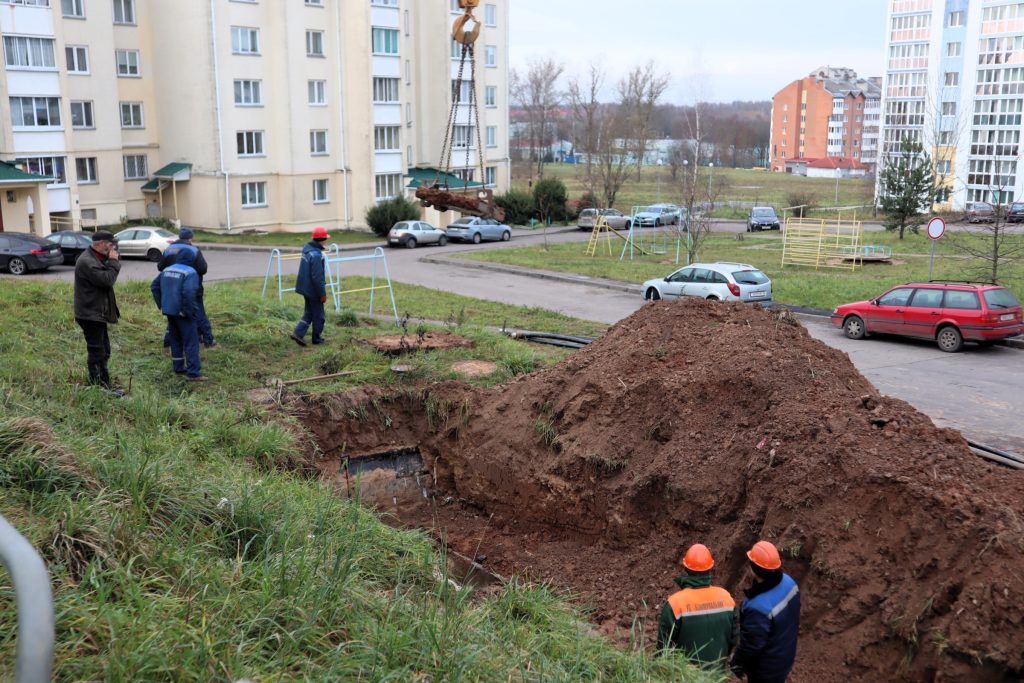 В Молодечно во дворе девятиэтажки №5 на Спасской улице работники «Коммунальника» вырыли траншею для замены трубы горячего водоснабжения. Местные жители возмутились тем, что место работ недостаточно ограждено. Не очень осмотрительному пешеходу, особенно в темное время суток, легко можно свалится с высокого откоса.