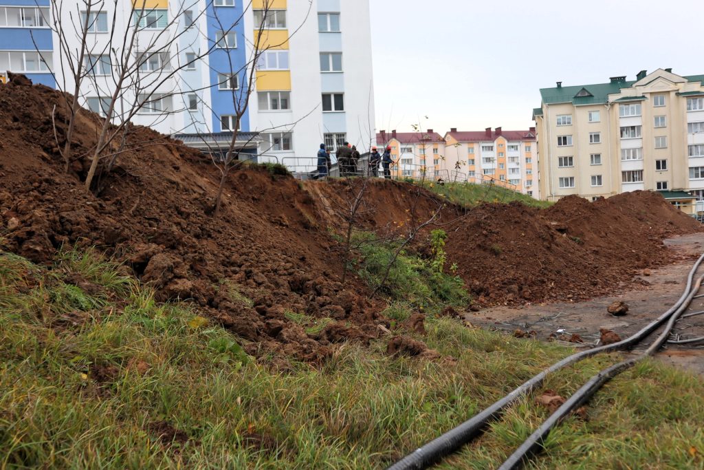 Журналист Kraj.by отправился на место 13 ноября после обеда. В 14:30 в траншее трудились рабочие.