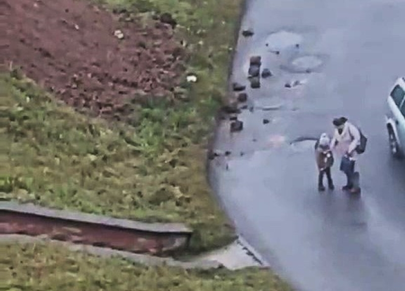Заметил наш читатель и то, что рядом с траншеей гуляют мамы с маленькими детьми. И куски земли падают прямо им под ноги.