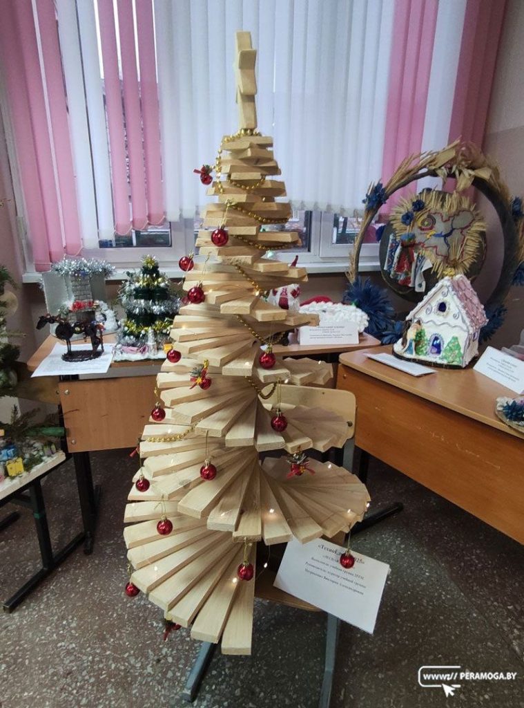 Уникальные ёлки из необычных материалов: выставка проходит в Вилейском государственном колледже