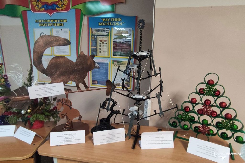 В Вилейском государственном колледже царит предновогодняя атмосфера. В фойе учреждения образования развернулась удивительная выставка творческих работ, подготовленная в рамках отборочного тура областного этапа республиканского конкурса «Техно-ёлка», пишет peramoga.by.