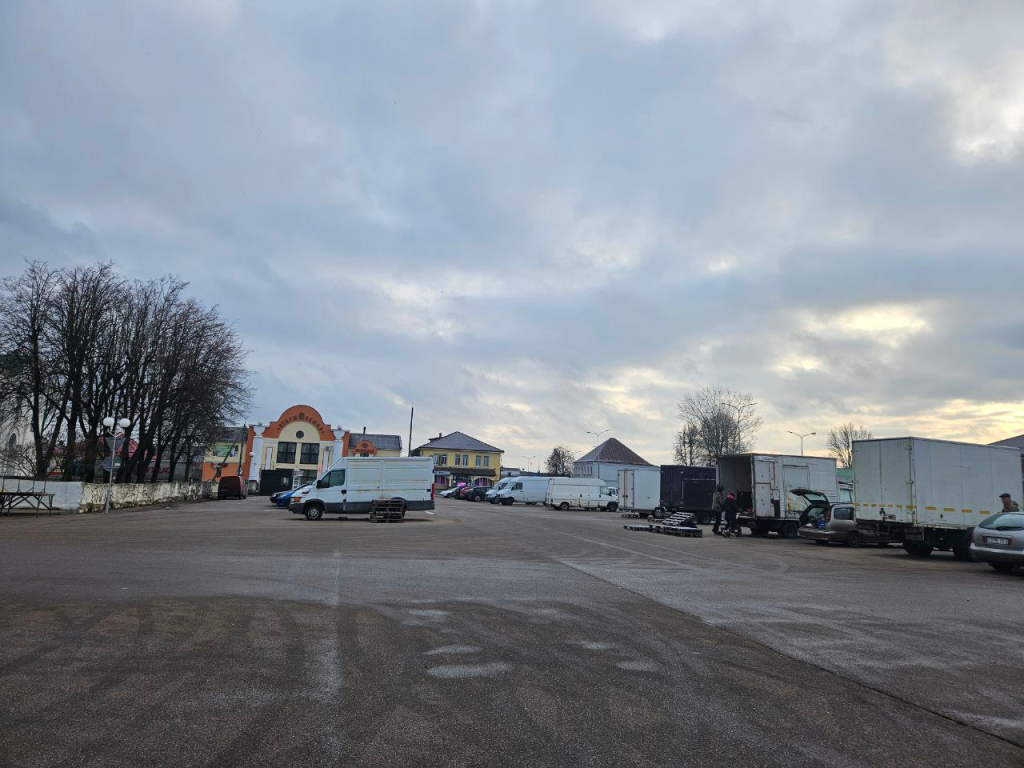 В центре площади стоит все еще много грузовых автомобилей, и только несколько из них открыты.