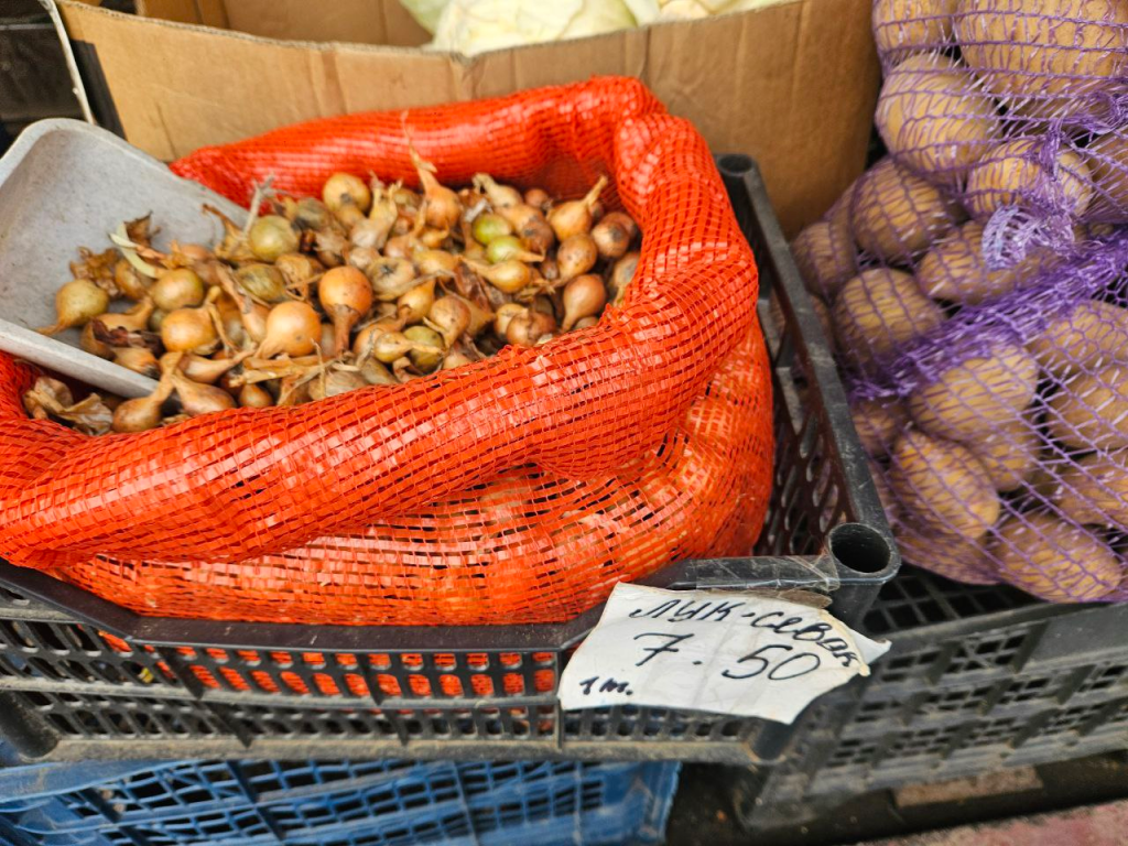 Есть и лук-севок, цена — 7 рублей 50 копеек.