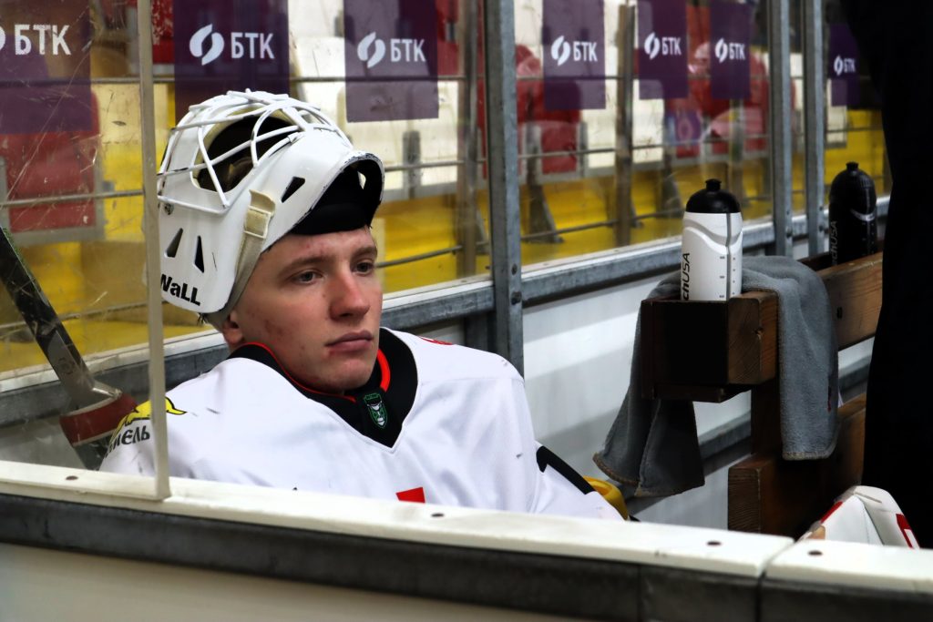Тренерский штаб «Гомеля» понимает, что дальше так продолжаться не может, и берет 30-секундный тайм-аут. Результатом полуминутного совещания становится смена вратаря. В рамку становится Андрей Карчевский, а расстроенный Артемий Гайдуков усаживается на лавочку запасных. Сегодняшний игровой вечер для него закончен.
