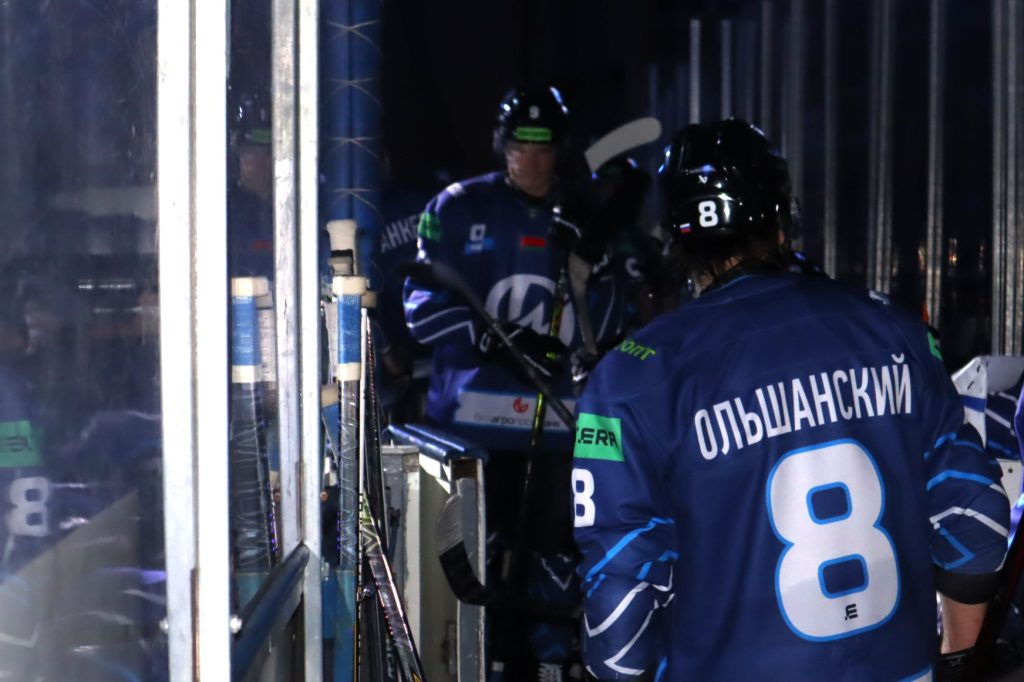 Далее в игре было обоюдное удаление. На 45 минуте отбывать повинность за толчки клюшками поехали гомельчанин Максим Войтович и наш Савелий Ольшанский, который должен шайбу девушке Веронике.