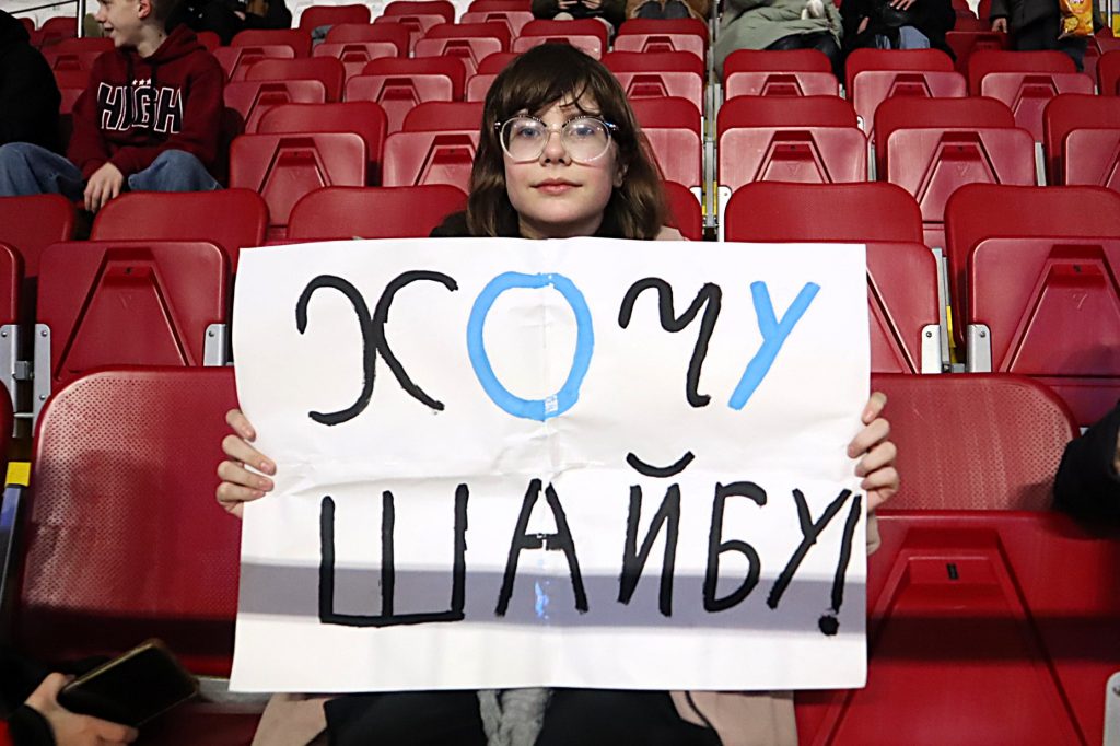 Тем временем девушка Вероника на трибуне ждет шайбу не от Игнатенко, а от Савелия Ольшанского. Причем журналист Kraj.by специально спросил у Ники: Ольшанский должен шайбу забить или подарить ее девушке? Вероника просит от Савелия шайбу в подарок.