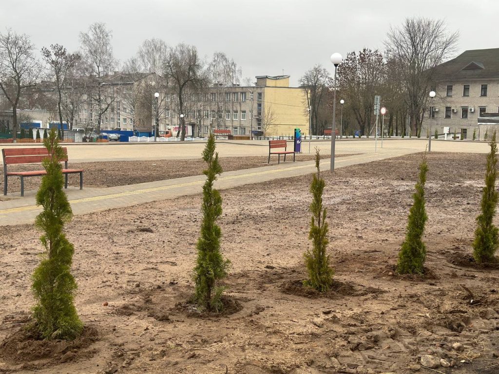 В парковой зоне сотрудники ЖКХ и учащиеся колледжа высадили более сотни туй из питомника лесхоза, которые послужат живой изгородью.
