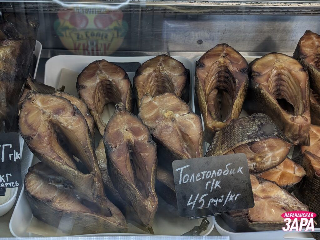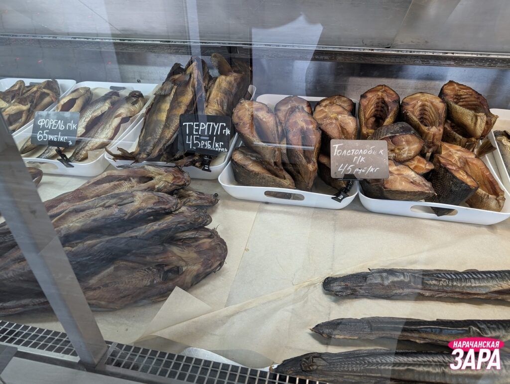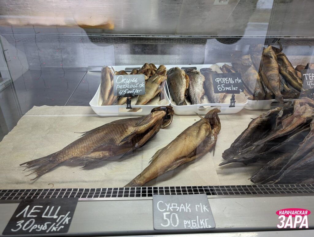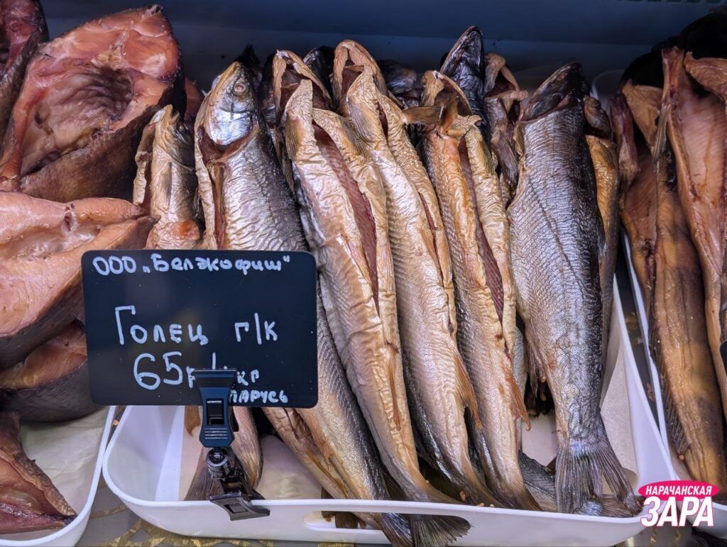 Заглянули в частный рыбный магазин в Мяделе. Поинтересовались, что есть на прилавках и сколько стоит копченая продукция, пишет narachanka.by.