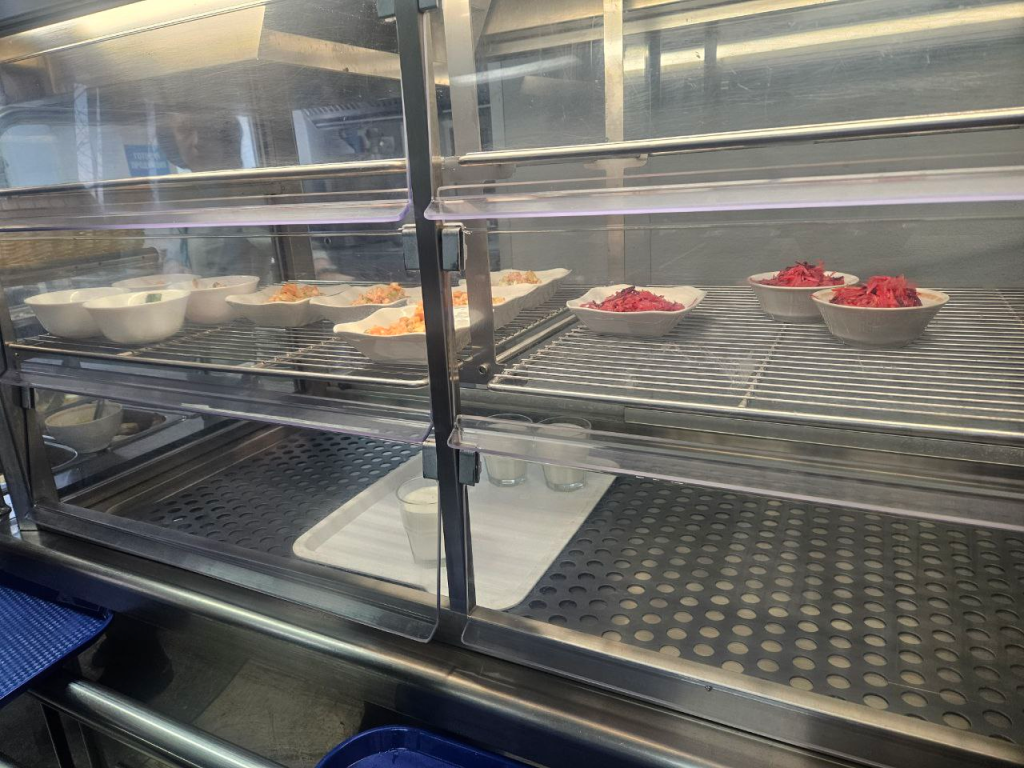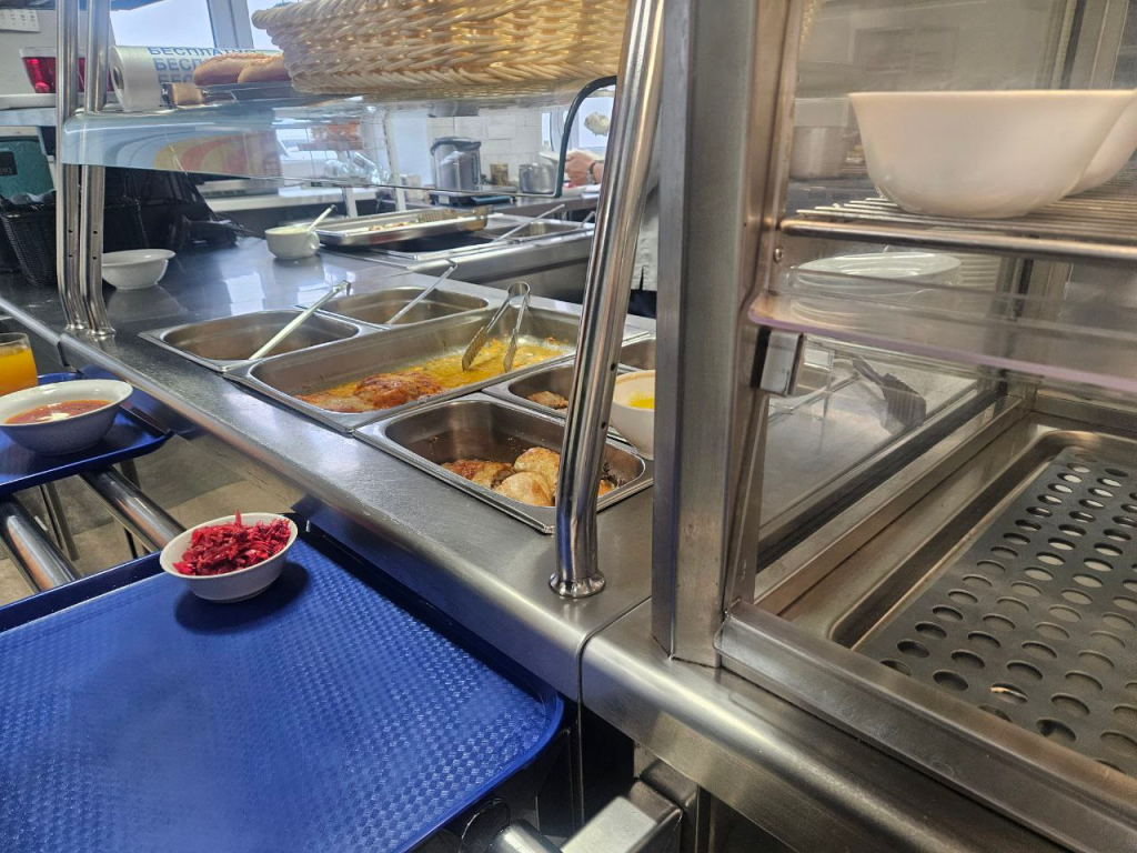 Учитывая, что столовую посещает меньшее количество посетителей, чем кафе или столовую локомотивного депо, понятен небольшой ассортимент блюд. Однако в наличии есть все: и салаты, и гарниры, и горячее, и напитки в нескольких вариантах.