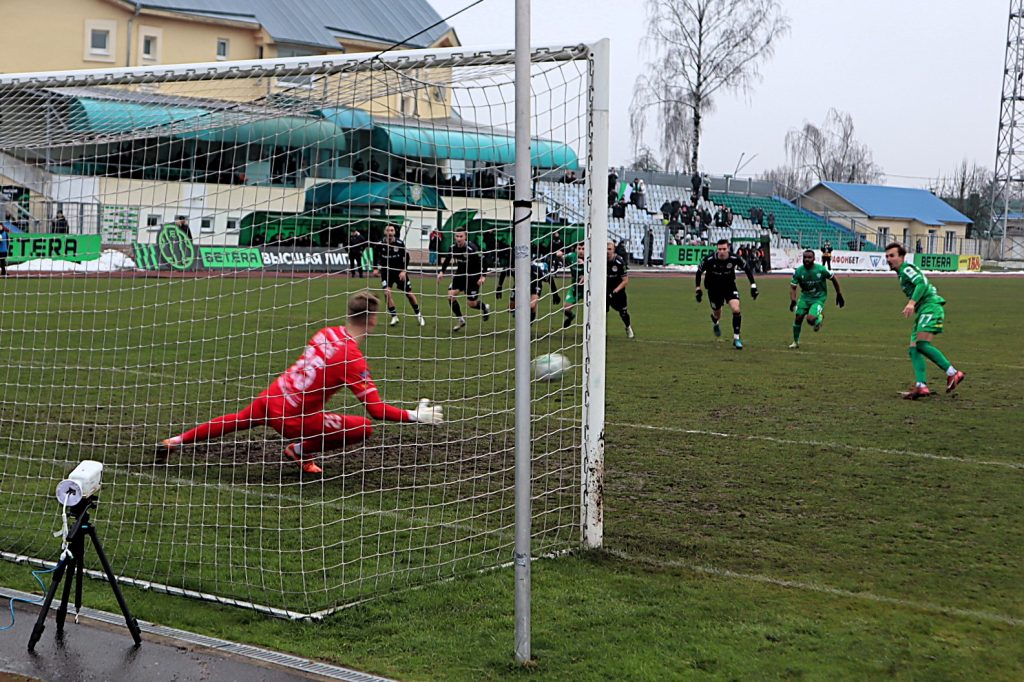 Главный арбитр матча Виктор Шимусик был уверен, что так поступать нельзя. Рефери свистнул и указал на точку. Назревала сенсация. Последняя команда высшей лиги могла повести со счетом 2:0 в игре не с кем-нибудь, а с «Торпедо-БелАЗ».