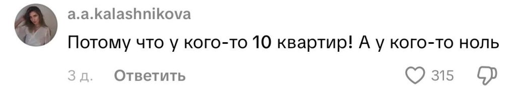 Многие пишут, что проблема в неравенстве. «Потому что у кого-то 10 квартир! А у кого-то ноль», — отмечают комментаторы.