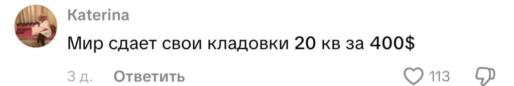 «Мир сдает свои кладовки 20 кв. м по 400 долларов», — пишут зрители.