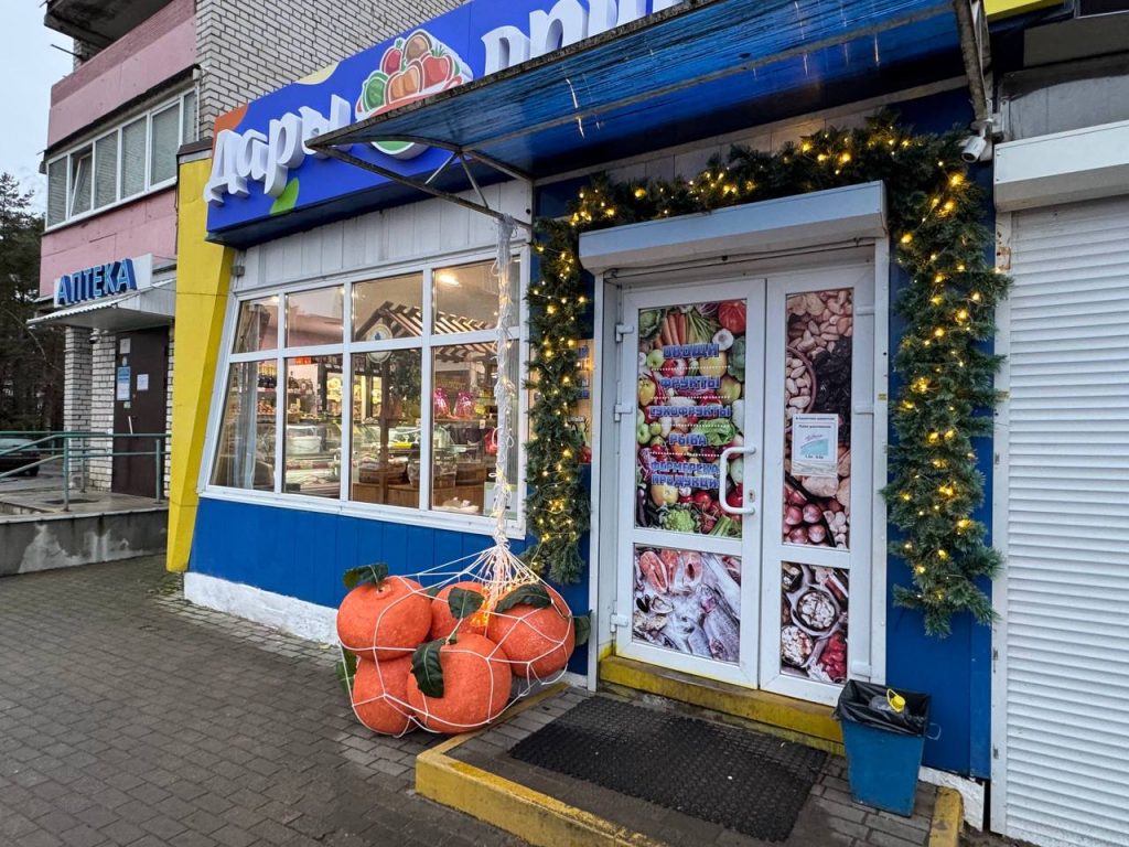 Возле овощного магазина на улице Гагарина посетителей у входа встречают гигантские мандарины, которые создают ароматное и солнечное настроение.