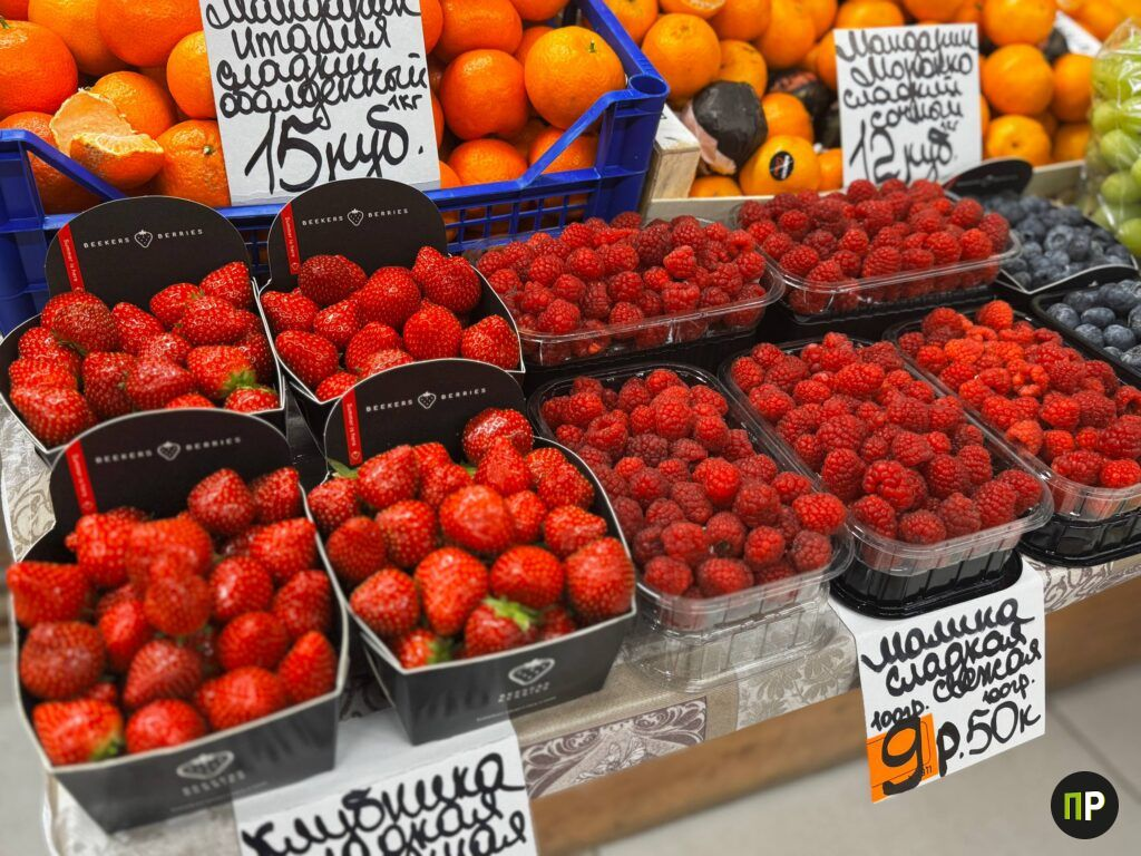 Из свежих ягод, которые украсят любой торт или мороженое, в наличии малина за 95 и клубника за 85 рублей за килограмм. Самой дорогой оказалась голубика из Перу — от 100 до 130 рублей.