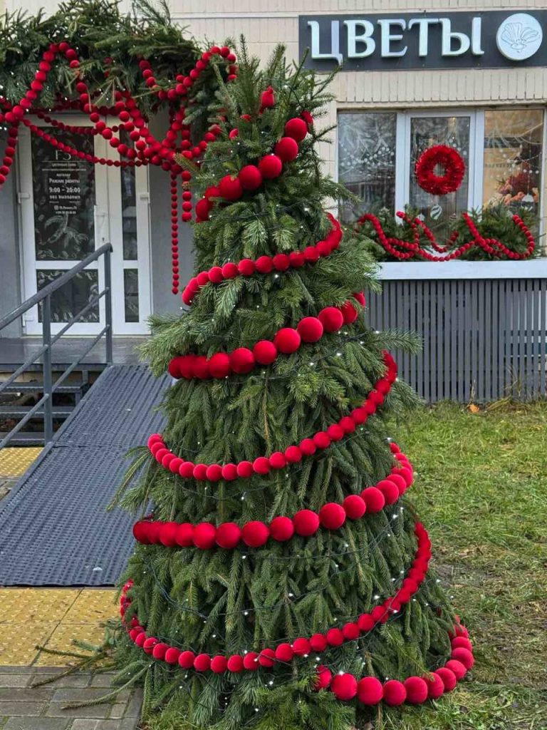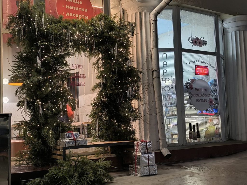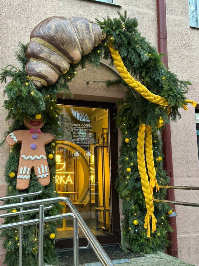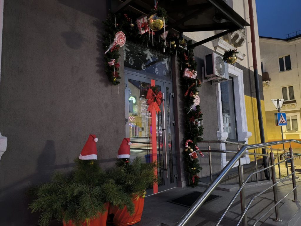 Ёлочка макушкой вниз и скамеечка для исполнения желаний: смотрим, как украшены здания в Молодечно к Новому году
