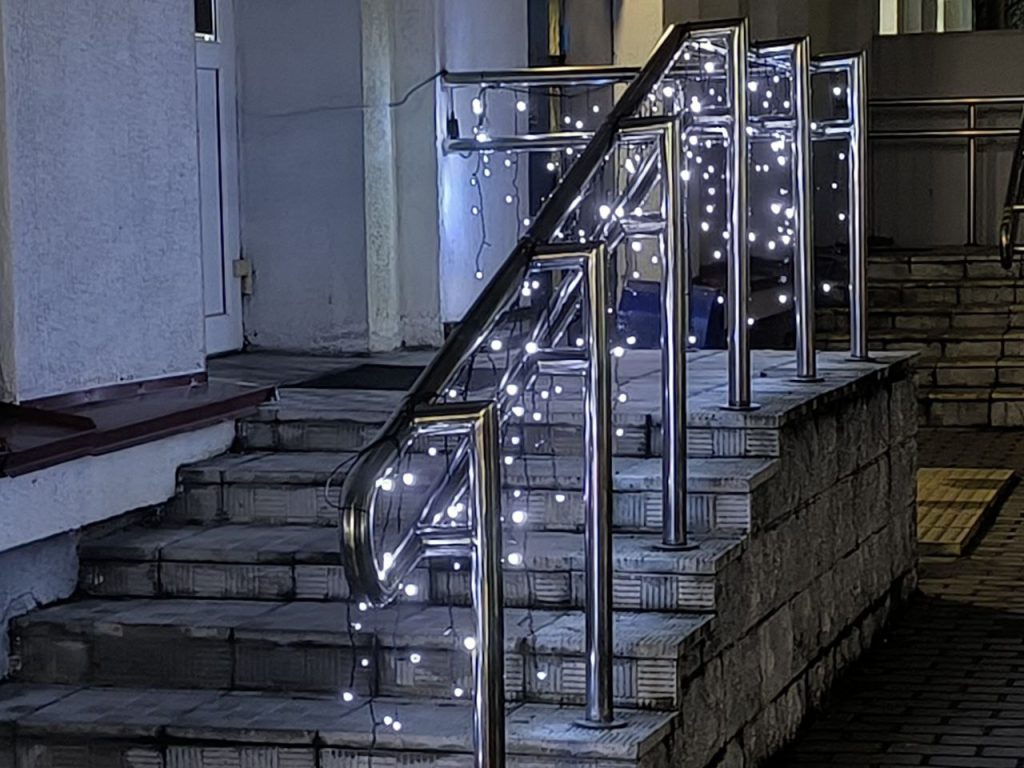 Для создания новогоднего настроения порой достаточно уличной гирлянды — тысячи разноцветных огоньков украшают фасады зданий, козырьки, перила и поручни лестниц.
