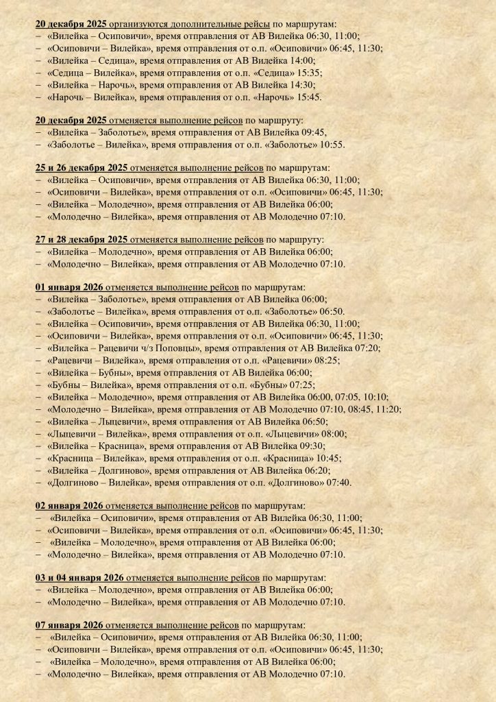 Автобусы в Вилейке с 19 декабря по 7 января будут ходить по отдельному расписанию