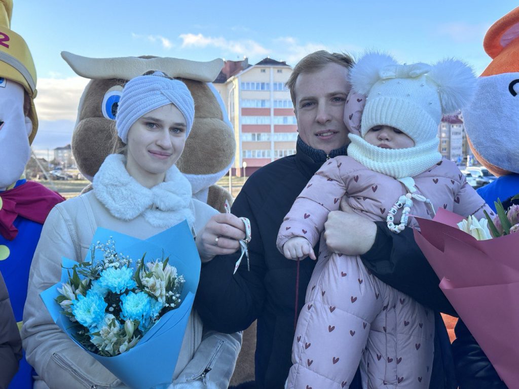 Семья Мицкевич на празднике в полном составе с дочкой, молодые родители не скрывали своей радости от новоселья.