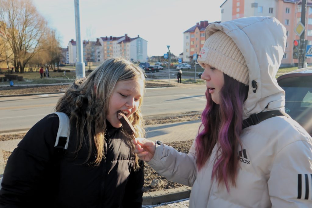 Девчонки купили в «Санте» детское шампанское и снеки «Cheetos». Мороженое им подарили. Без денег. Просто в честь открытия магазина. Причем, поскольку девочки – разные, то и мороженое им вручили разное – в вафельном стаканчике и на палочке. Подружки угощали друг друга. Было вкусно.