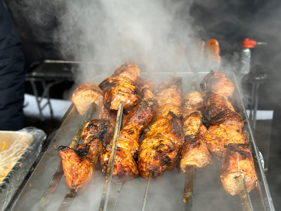 100 граммов шашлыка из свинины здесь продавали за 7 рублей, 300 граммов ароматного плова — 10 рублей.