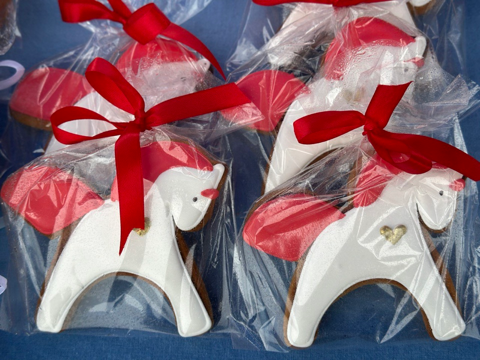 Из товаров народных умельцев можно было купить деревянную и глиняную посуду, мыло ручной работы, украшения. Добавляли настроения яркие тематические имбирные пряники и наборчики сладостей.