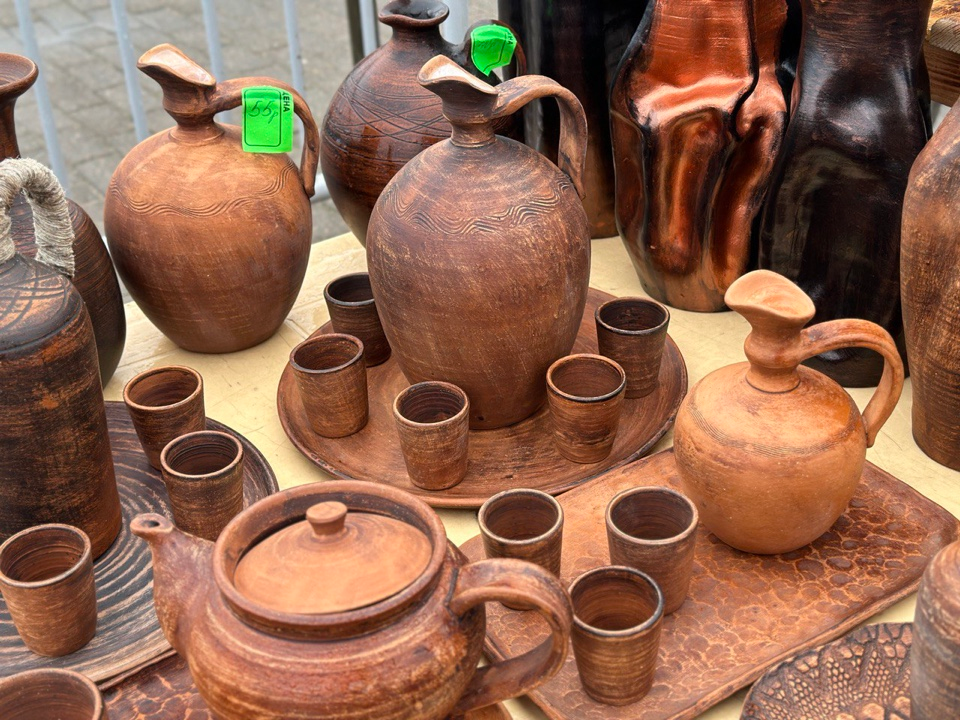 Кроме лошадок в ассортименте были подковы на удачу, елочные игрушки, корзинки, шляпы и другие народные изделия.