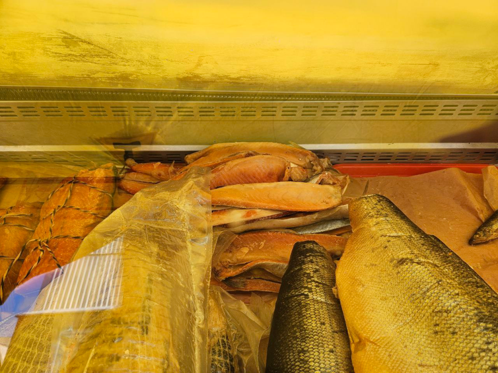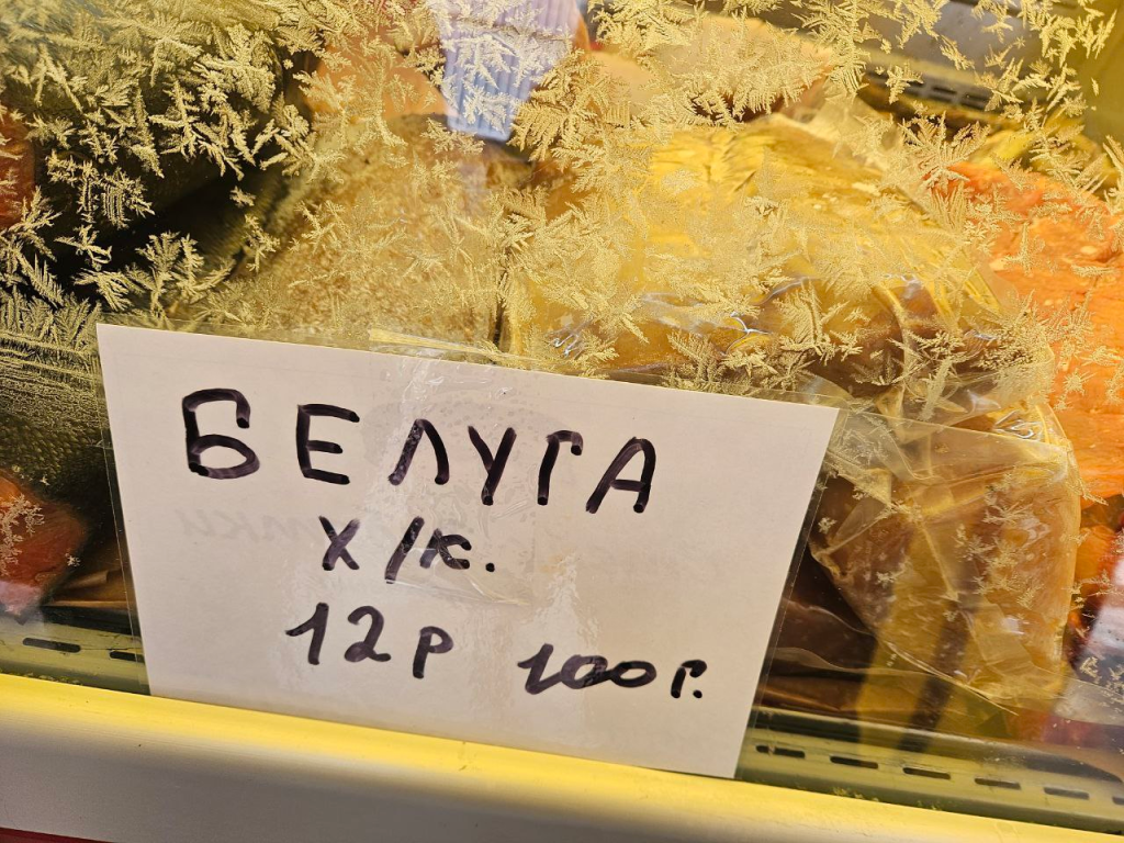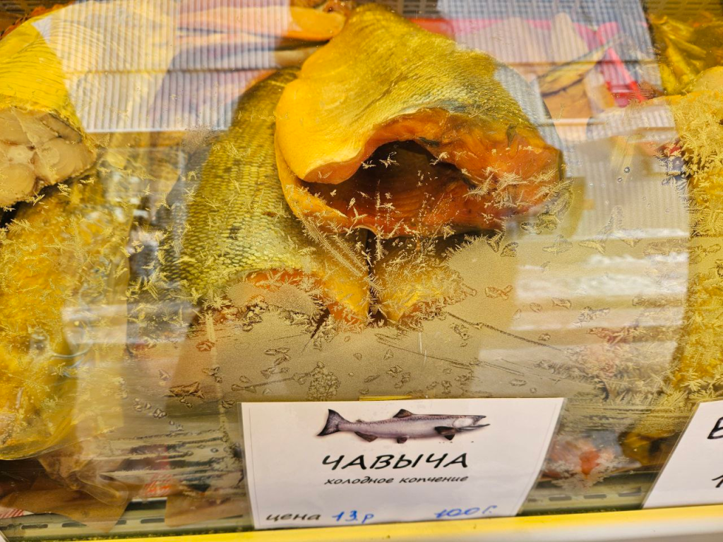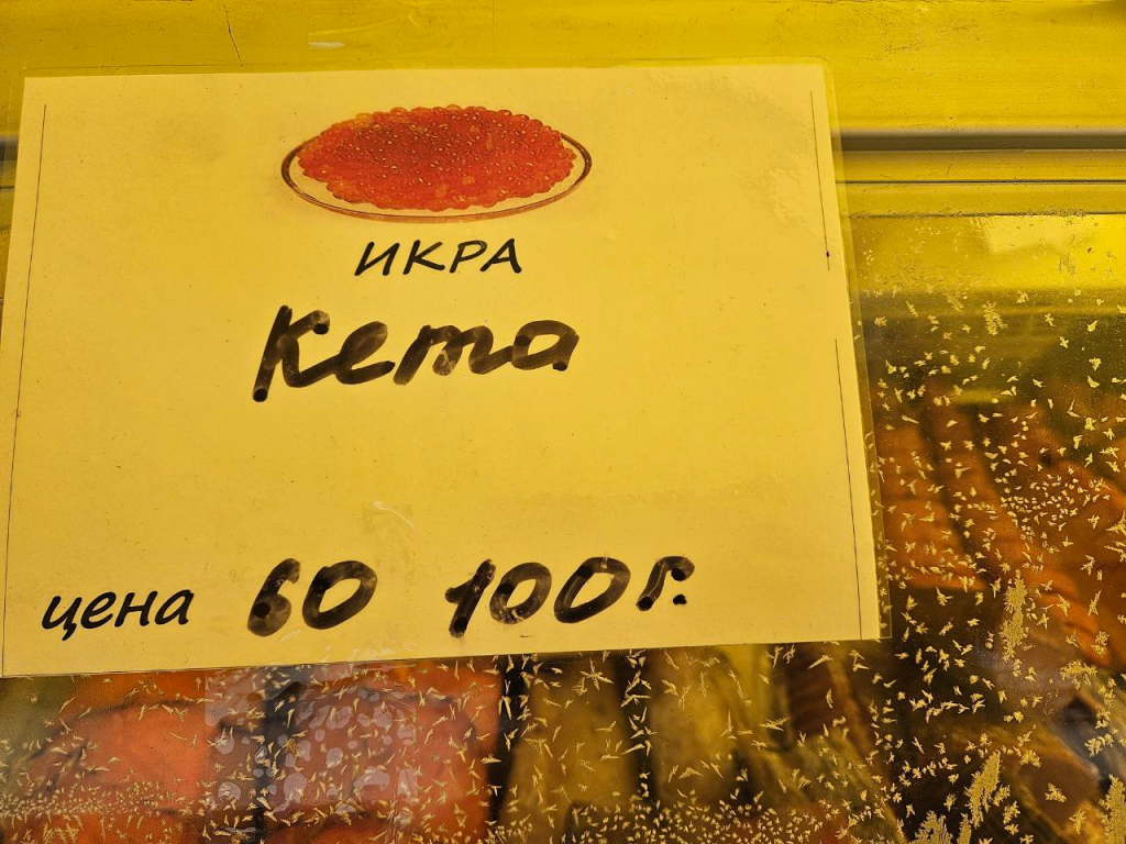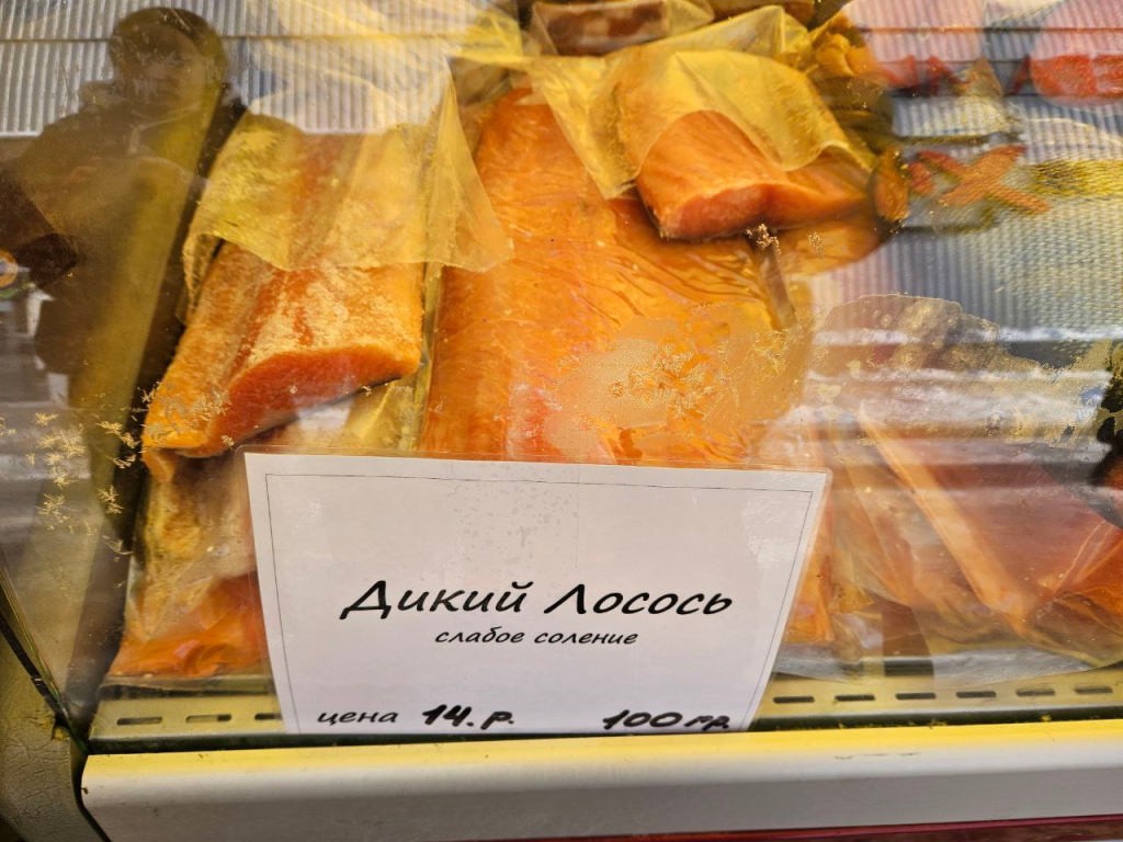 Первый взгляд на ценник порадовал: солёная и копчёная рыба по 11, 13, 14, 17 рублей, икра — по 60.