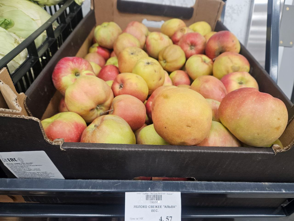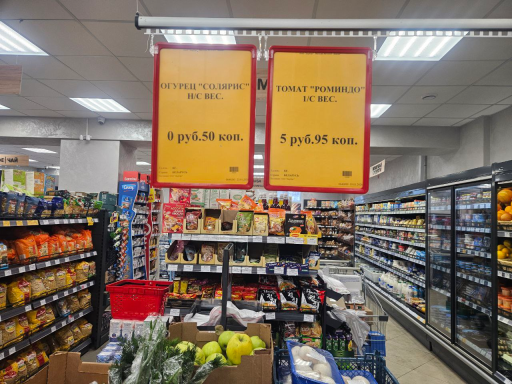 Посмотрели, есть ли в магазинах Молодечно картофель, репчатый лук, капуста и яблоки. Нашли свежие огурцы по 50 копеек
