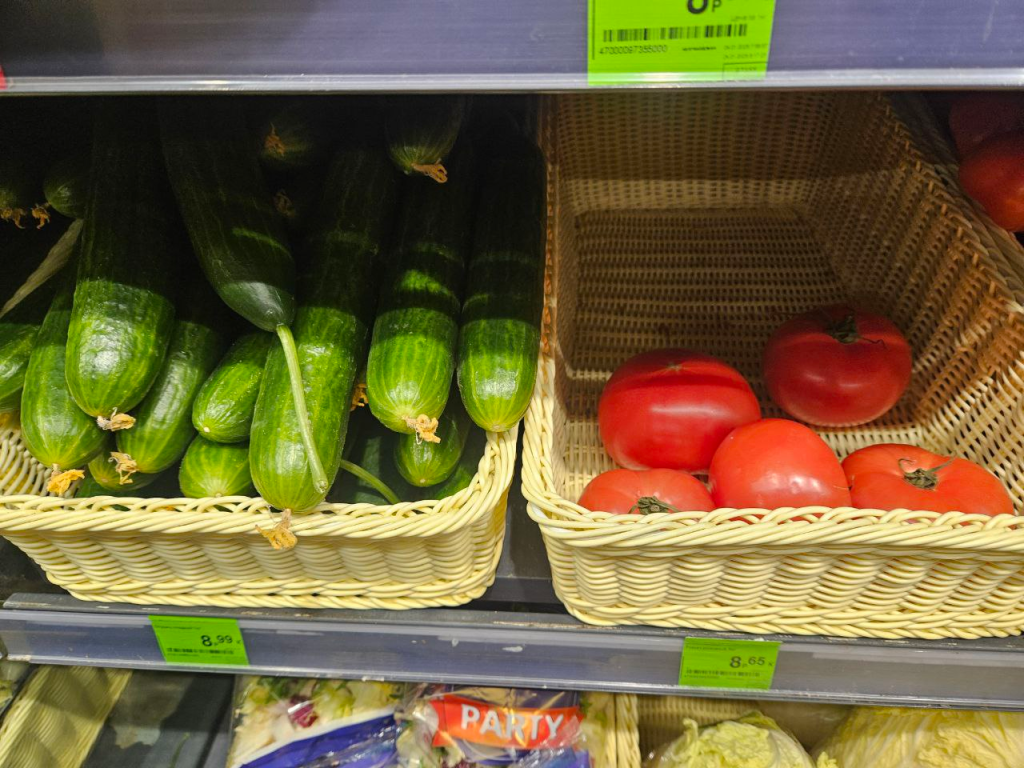 Огурцы и томаты здесь дороже 8 рублей, а яблоки немного дешевле 5 рублей.