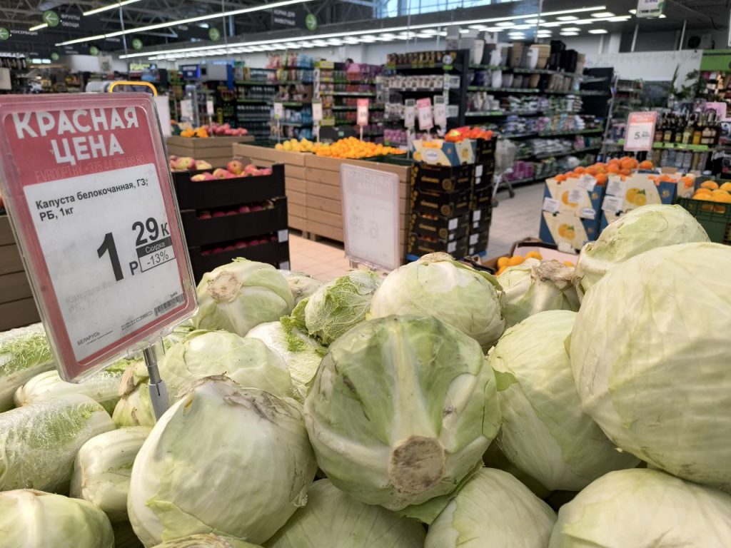 В магазине «Евроопт» на улице Громадовской свежая капуста продаётся по скидке — 1 рубль 29 копеек за килограмм.