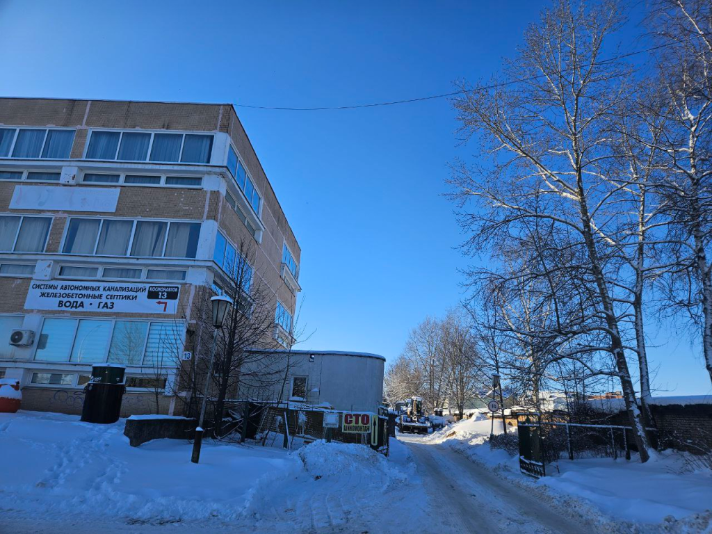 Территория возле этого здания соседствует с гаражным кооперативом. Вдоль гаражей с этой стороны растёт много деревьев, все они расположены очень близко к кирпичным стенам.
